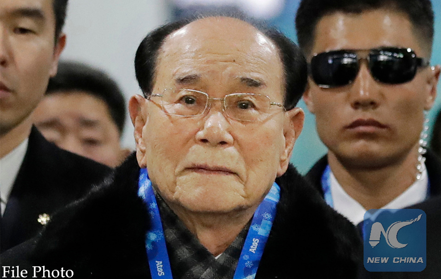 In this Feb. 9, 2018, file photo, Kim Yong Nam, president of the Presidium of the Supreme People's Assembly of the Democratic People's Republic of Korea, arrives at the Jinbu train station in Pyeongchang, South Korea. (AP Photo)