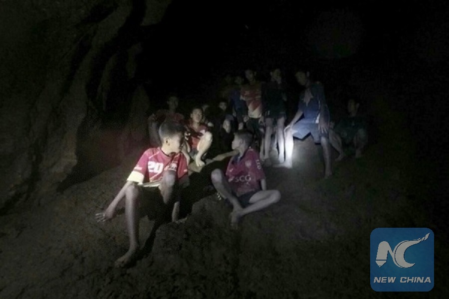 CHIANG RAI, Thailand, July 2 (Xinhua) -- Twelve teenagers and their football coach, trapped in a cave in northern Thailand for nine days, have been found alive on Monday night, Narongsak Osottanakorn, governor of Chiang Rai province said.