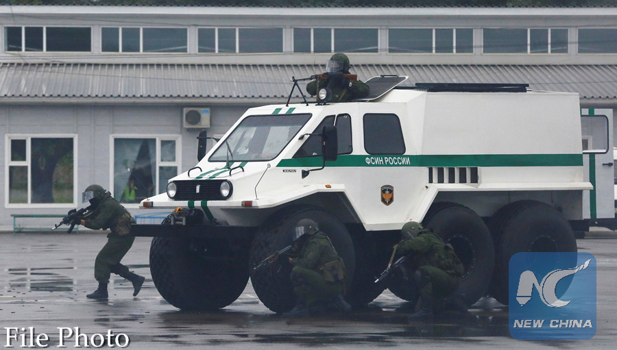 Members of the special purpose division demonstrate a "fight with a group of terrorists" during a show for townspeople in the Siberian city of Krasnoyarsk, Russia, August 13, 2017. (REUTERS PHOTO)