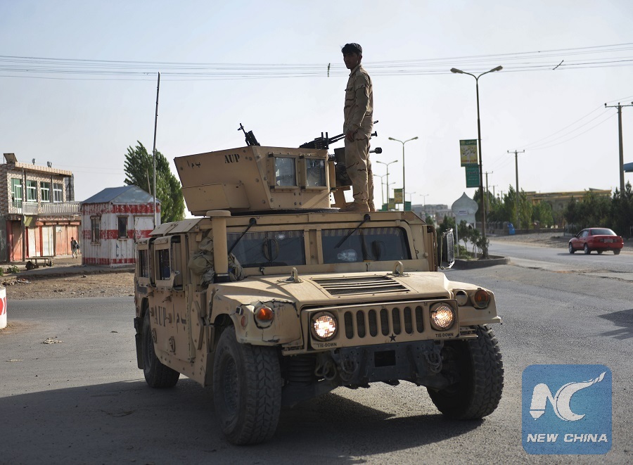 An Afghan security force member is seen in Ghazni city, the capital of Ghazni province, Afghanistan, Aug. 12, 2018. (Xinhua/Anwar Danish Yar)