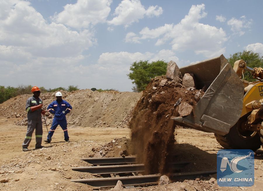 File photo shows mine workers go about their work at RioZim's Cam and Motor gold mine in Kadoma, about 140 kilometers west of Harare, capital of Zimbabwe, Oct. 27, 2016. (Xinhua)