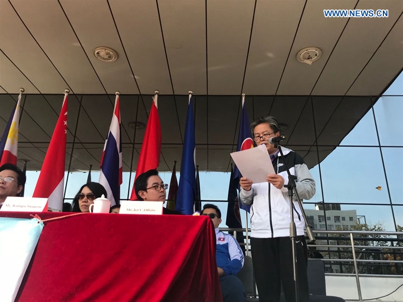Chen Dehai, Secretary-General of ASEAN-China Centre, addresses the opening ceremony of the 4th Beijing ASEAN Students' Games in Beijing, capital of China, Nov. 10, 2018. (Xinhuanet/Zhou Xin)