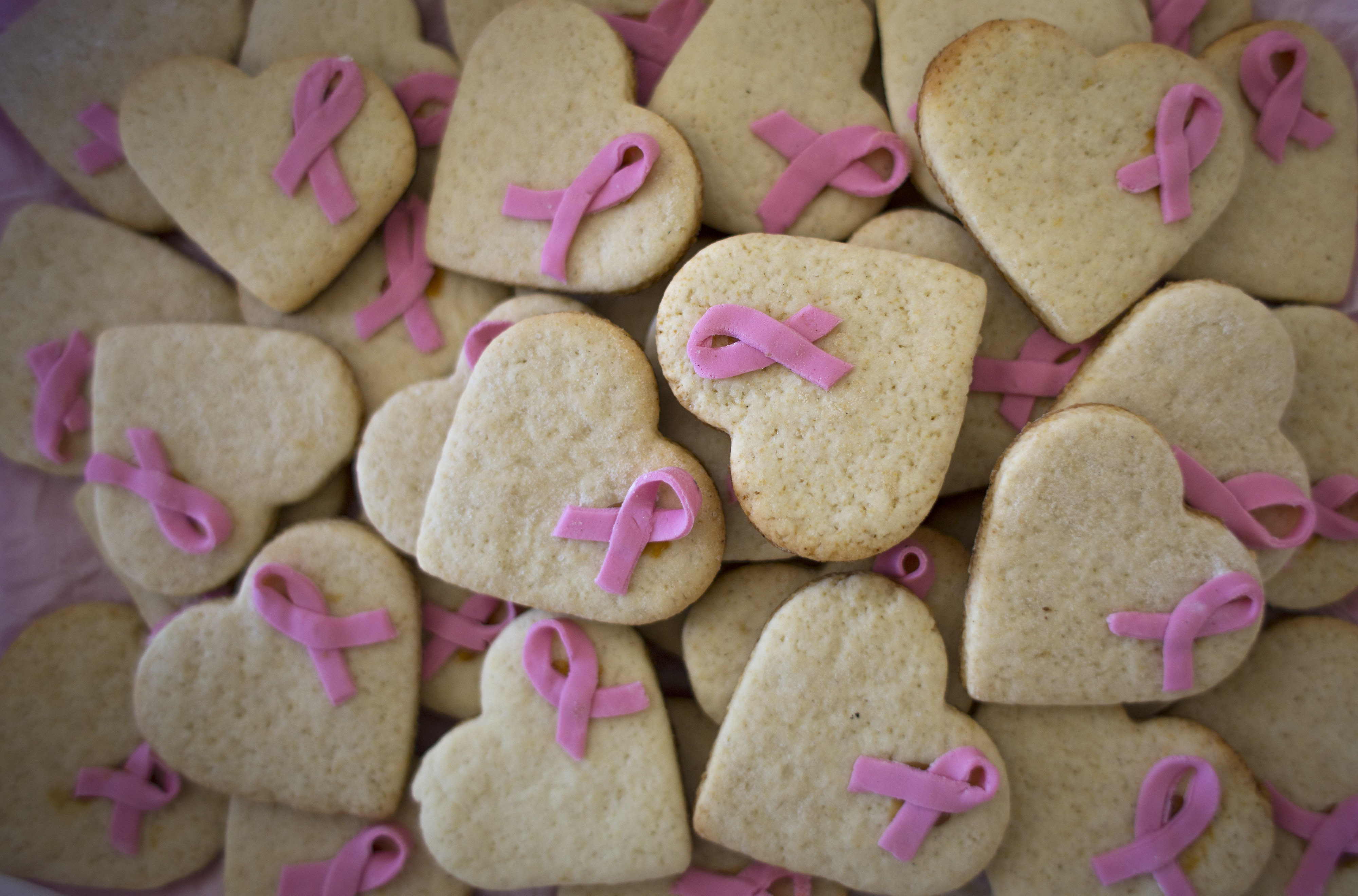 This image taken on Oct. 16, 2015 shows the cookies offered to attendees of a make-up class under the program "Look Good. Feel Better." (or LBSM for Spanish acronym), held by the NGO "Pink Ribbon", in the city of La Plata, Argentina. "Pink Ribbon" is a civil association that aims to strengthen the self-esteem and self-confidence of women with breast cancer by helping them improve their appearance. (Xinhua/Martin Zabala)