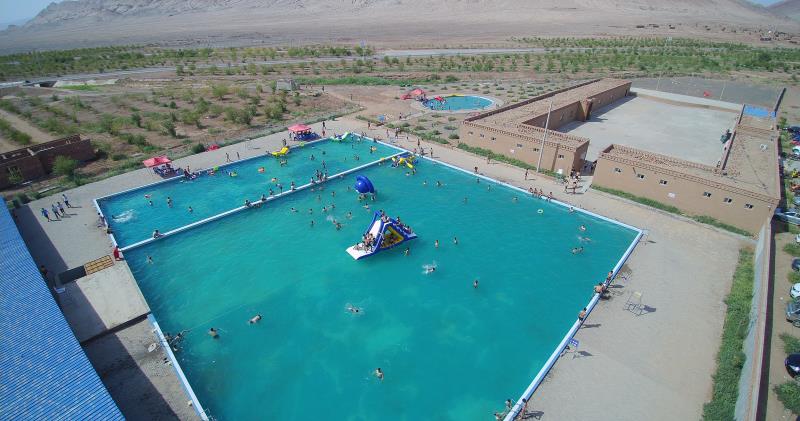 "We built this outdoor pool to provide a place where tourists can not only play in the water, but enjoy the amazing view of Turpan at the same time," Ykup said.