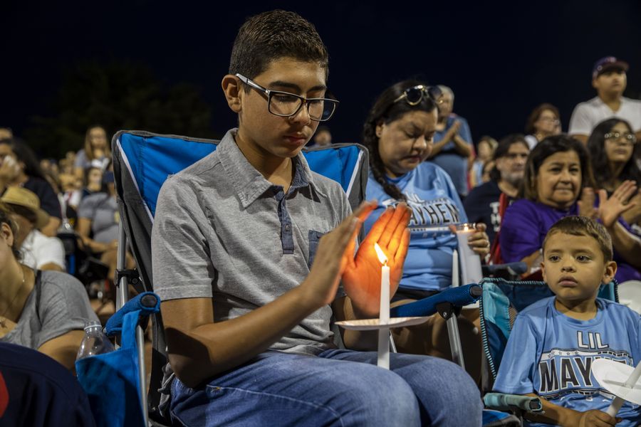 People take part in a prayer and vigil at Ponder Park in El Paso, Texas, the United States, Aug. 4, 2019. (Xinhua/Wang Ying)