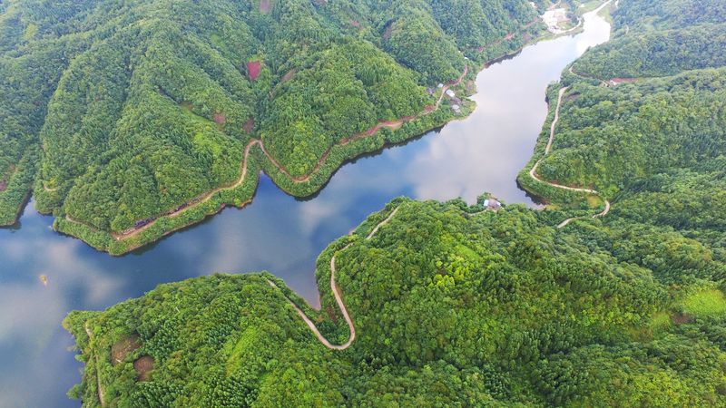 CHONGQING, Aug. 8, 2019 (Xinhua) -- Shades of deep green and blue create a placid picture of the Taiyang Lake in Shizhu Tujia Autonomous County, southwest China's Chongqing Municipality.