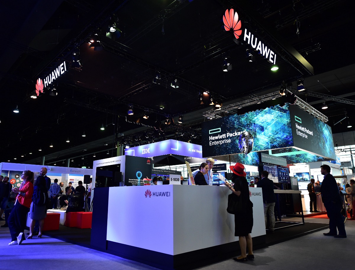 People visit Huawei's booth during the 2019 ISC High Performance conference and exhibition in Frankfurt, Germany, June 17, 2019. (Xinhua/Lu Yang)