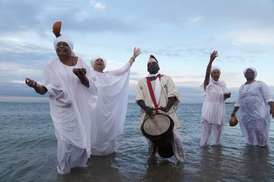 People attend a ceremony at Buckroe Beach in Hampton, Virginia, the United States, on Aug. 24, 2019. (Xinhua/Liu Jie)
