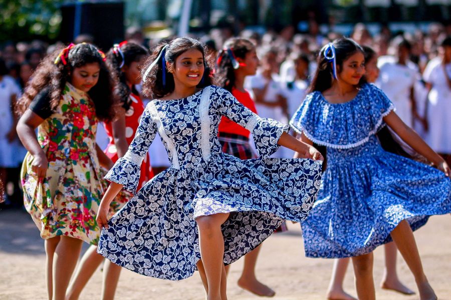 Students perform to celebrate Children's Day at Gothami Balika Vidyalaya in Colombo, Sri Lanka, on October 1, 2019. (Photo by Gayan Sameera/Xinhua)