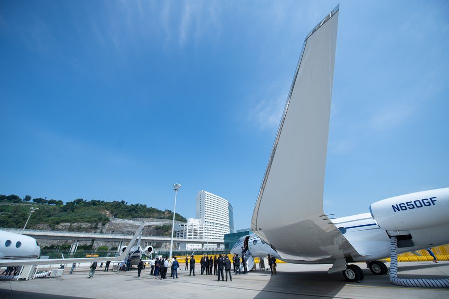 MACAO, Nov. 2, 2019 (Xinhua) -- People visited the Macao Business Aviation Exhibition at Macao International Airport on Friday, when The exhibition kicked off.