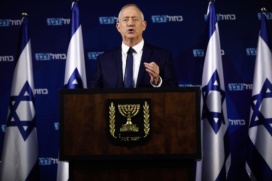 Israel's Blue and White party leader Benny Gantz speaks during a press conference in Tel Aviv, Israel, Jan. 25, 2020. Benny Gantz, the main political rival of Israeli Prime Minister Benjamin Netanyahu, announced on Saturday that he will meet U.S. President Donald Trump in Washington to discuss a Mideast peace plan. (JINI/Handout via Xinhua)