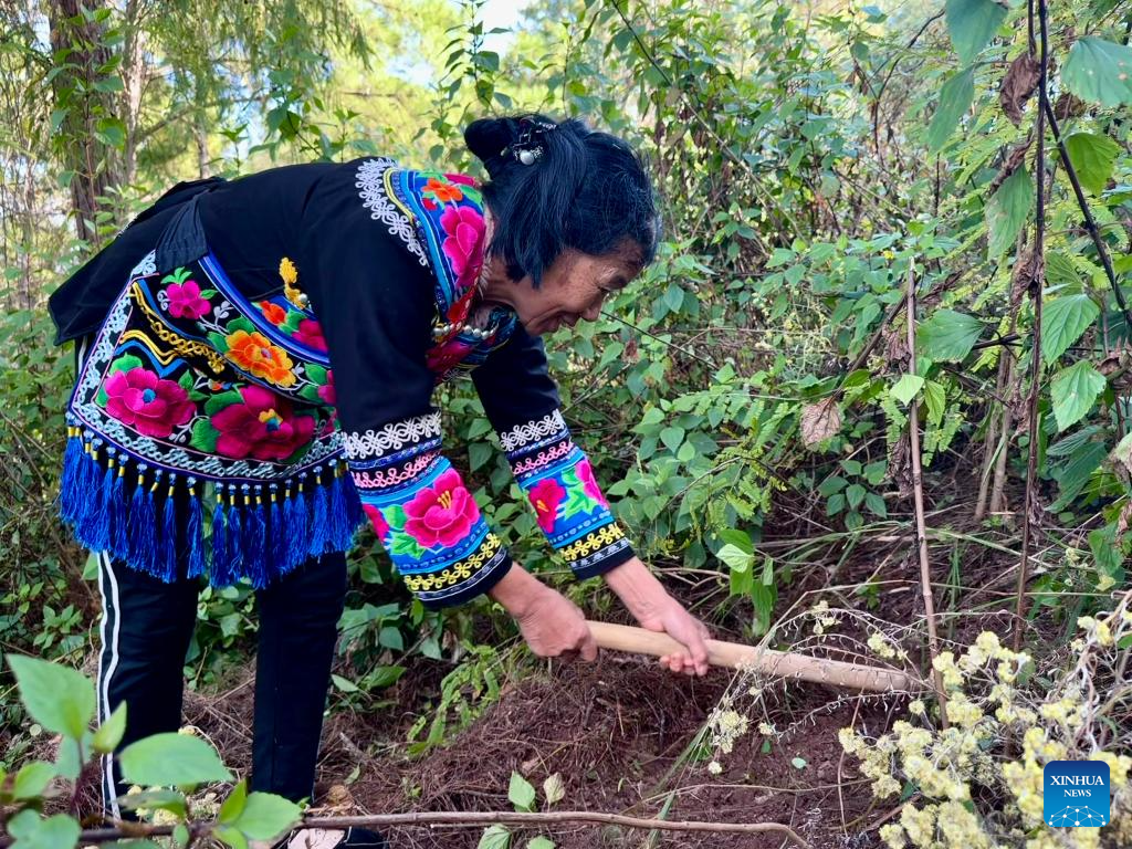 A resident digs Yunnan truffles in Yongren County, southwest China's Yunnan Province, Dec. 9, 2025.(Xinhua/Xiong Xuanang)