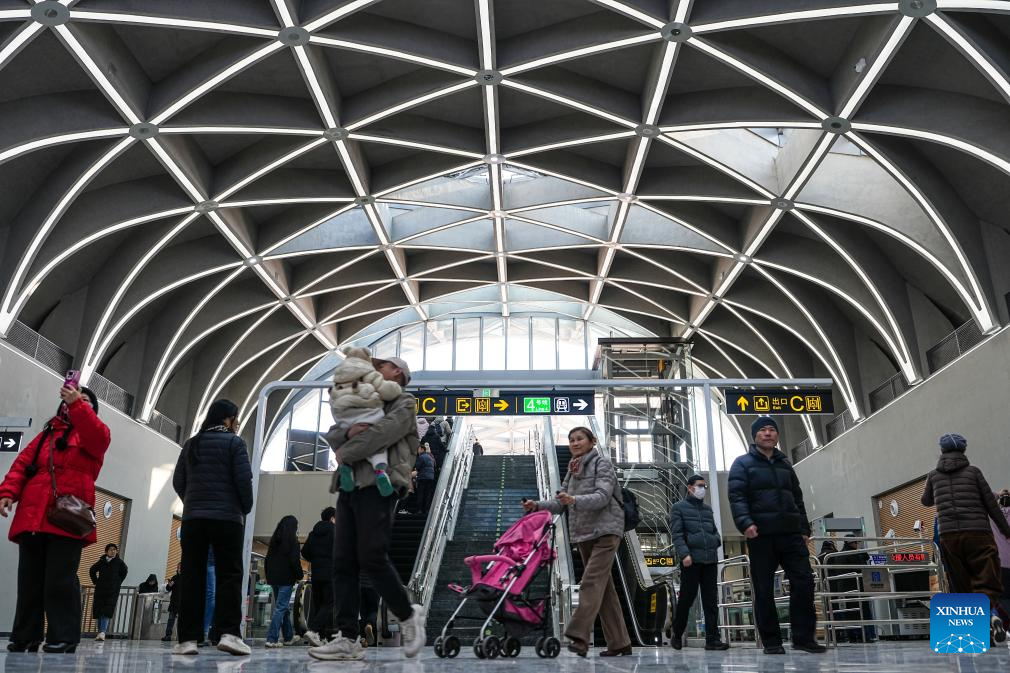 Citizens wait for the operation of Jinan Subway Line 4 at Quancheng Park Station in Jinan, east China's Shandong Province, Dec. 27, 2025. China's first subway line passing through a karst spring area began operation on Saturday in Jinan, marking an engineering breakthrough that balances urban transit demands with the protection of natural water resources. Jinan Subway Line 8 and the east section of Jinan Subway Line 6 started operation on the same day, increasing the city's total rail transit mileage to 248 kilometers. (Xinhua/Zhu Zheng)
