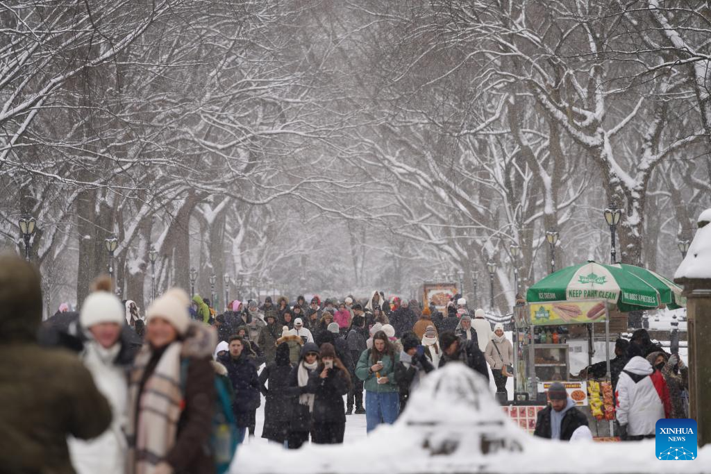 People visit the snow-covered Central Park in New York, the United States, on Dec. 27, 2025. (Xinhua/Zhang Fengguo)