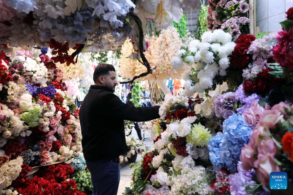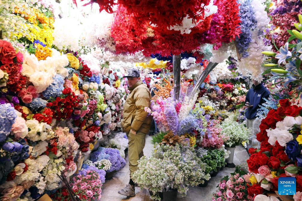 This photo taken on Dec. 30, 2025 shows a shop selling artificial flowers in Baghdad, Iraq. (Xinhua/Khalil Dawood)