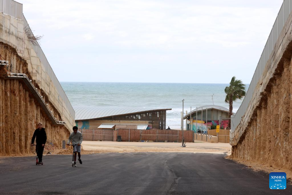 Photo taken on Dec. 30, 2025 shows people walking along the beach of the Mediterranean Sea in Rishon LeZion, Israel. (Photo by Gil Cohen Magen/Xinhua)