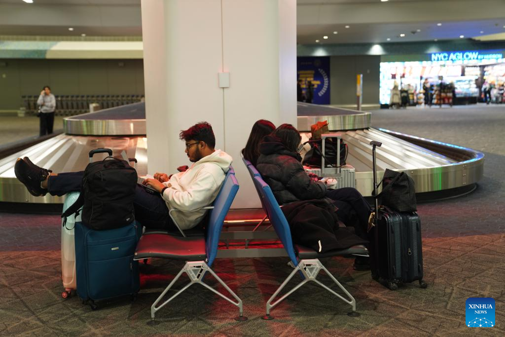 Stranded passengers are seen at LaGuardia Airport in New York, the United States, on Dec. 26, 2025. A snowstorm hitting New York on Friday, which has caused flight delays and cancellations. (Xinhua/Zhang Fengguo)