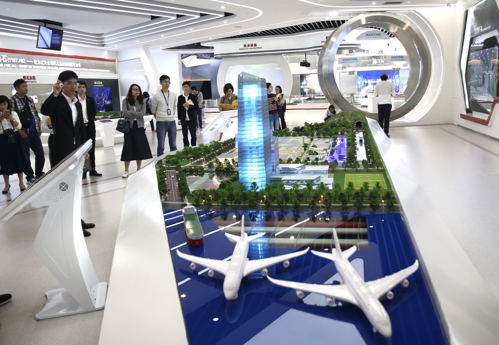 Visitors observe smart products of Zhenshi Holding Group at a showroom in Jiaxing city's Tongxiang, Zhejiang province. (Photo by Zou Hong/China Daily)