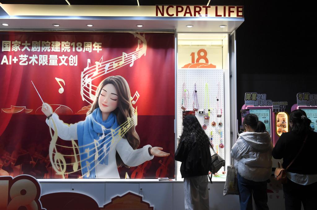 12月22日,观众在国家大剧院选购文创产品。新华社记者 罗晓光 摄