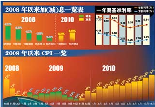 央行選取這個(gè)時(shí)點(diǎn)加息,不禁讓人聯(lián)系到統(tǒng)計(jì)局將于近日公布的1月份CPI,市場(chǎng)普遍預(yù)計(jì)CPI會(huì)超過(guò)5%的高點(diǎn)。專家認(rèn)為,今年央行可能還將有三至四次加息,同時(shí)還會(huì)繼續(xù)上調(diào)存款準(zhǔn)備金率。 [詳細(xì)]