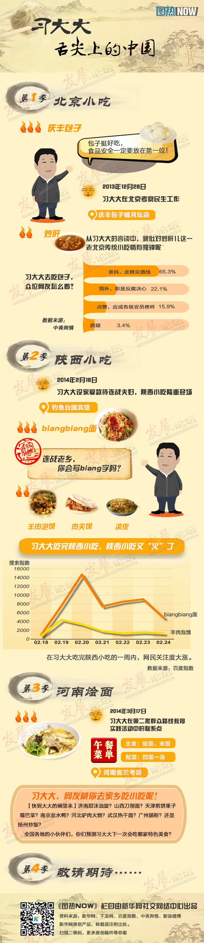 從慶豐包子到河南燴面,習(xí)大大的舌尖,嘗火了一批簡(jiǎn)單實(shí)惠又不乏文化底蘊(yùn)的中華美食。究竟還有多少這樣的美食會(huì)一波波火起來(lái)?各級(jí)官員,快來(lái)學(xué)習(xí)習(xí)大大清新簡(jiǎn)約樸實(shí)親民的“食風(fēng)”吧!