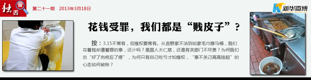 @食不果腹:【事不關(guān)己高高掛起】吉野家棄飯上桌,如家毛巾擦廁所,若是不遇3·15,想必事實必被埋沒,曝光丑態(tài)如此難,我沒遭遇干嘛管,人人都是此心態(tài),社會早晚成病態(tài)。