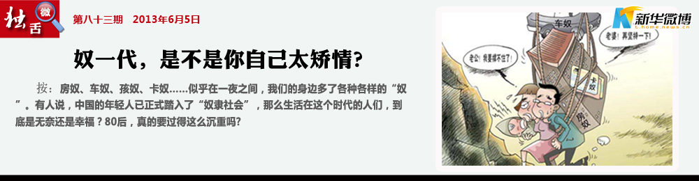 【孩奴】 80后父母一生都在為子女打拼、為子女忙碌、為子女賺錢。當(dāng)上了孩奴的人,不敢生病,不敢高消費(fèi),不敢輕易換工作。