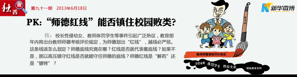 師德在哪里? 一個(gè)國(guó)家的教師道德需要主管部門來(lái)設(shè)紅線,這個(gè)國(guó)家的師德還有嗎?人為劃定的“紅線”無(wú)疑是師德蛻化的外在表征,“紅線”劃多了,且對(duì)踩踏“紅線”者不能形成有效震懾,“底線”就會(huì)逐步棄守。
