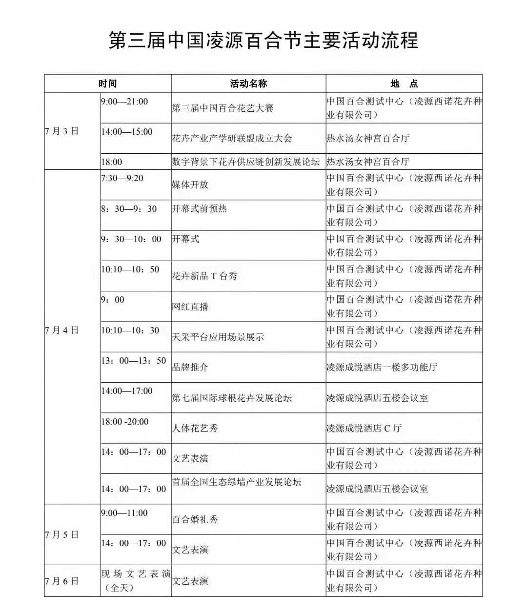 第三屆中國(guó)凌源百合節(jié)活動(dòng)安排