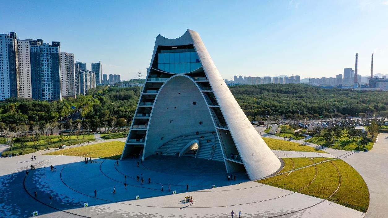 面朝大海的时光塔,其独特的建筑造型与滨海环境相得益彰。(黄渤海新区工委宣传群团部供图)