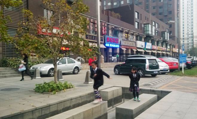 小區(qū)共有三個(gè)大門,只有一個(gè)大門設(shè)有門禁,其他兩個(gè)都可以隨意進(jìn)入,門口沒有保安,小區(qū)內(nèi)也沒有保安巡邏。小區(qū)內(nèi)的道路車輛可以隨意行走,可見沒有進(jìn)行人車分流,并且路上沒有緩沖帶。小區(qū)的外圍護(hù)欄十分矮,基本上與汽車同等高度,也沒有24小時(shí)監(jiān)控設(shè)施。