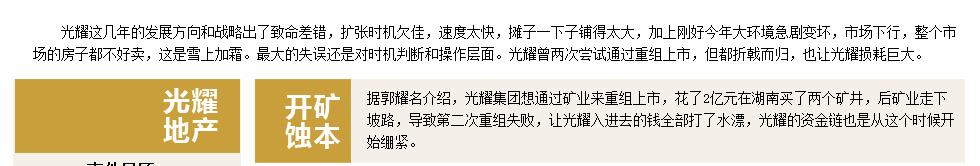 多家媒體報道稱光耀地產(chǎn)資金鏈斷裂瀕臨倒閉 |