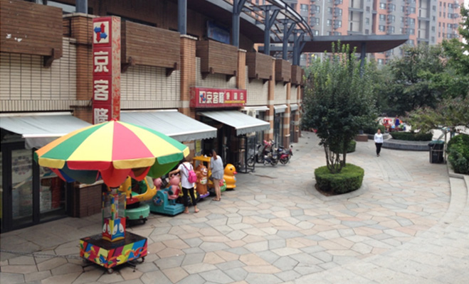 記者觀察到,小區(qū)小廣場附近,有京客隆和世紀聯(lián)華兩個便利店,里面所出售的物品可以滿足居民的基本生活。便利店門口也有蔬菜、水果等可以選購。