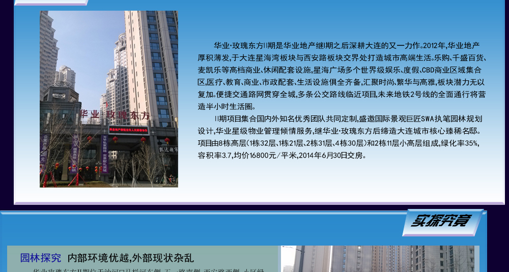 ????說起大連的幾大商圈,西安路與和平廣場不得不提,而位于這兩個商圈中間位置的華業(yè)玫瑰東方Ⅱ期,成為眾多購房者關(guān)注的焦點(diǎn),本期的神秘訪客我們就實地探訪華業(yè)玫瑰東方Ⅱ期,看一看它的優(yōu)勢與不足。