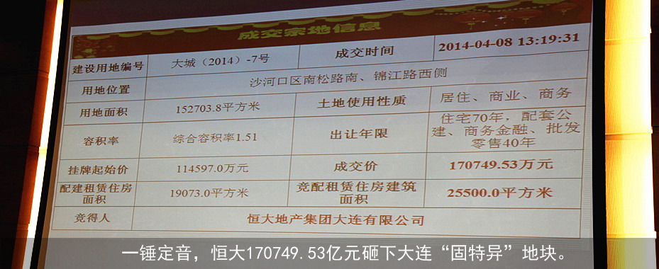 恒大17億大連奪地"固特異" 業(yè)內(nèi)熱議"值不值"?今日,大連年度最熱固特異地塊經(jīng)過(guò)數(shù)個(gè)小時(shí)148輪加價(jià),終于被恒大地產(chǎn)集團(tuán)大連有限公司以170749.53萬(wàn)元加配25500平方米保障房競(jìng)得,然而花落恒大雖塵埃落定,但固特異地塊何以引得房企大鱷如此鐘情又是否值得如此高價(jià),引發(fā)了業(yè)內(nèi)關(guān)注度的二次發(fā)酵。[詳情] |