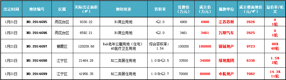 據(jù)寧房數(shù)據(jù)統(tǒng)計,2015年1月,南京市(高淳、溧水除外)土地交易市場共計成交5幅地塊,總成交面積為19.96萬平方米,市國土局共計吸金30.23億元,同比去年1月(成交面積68.17萬平方米,成交金額32.37億元),成交面積下降7成,成交金額下跌不到1成?!璠詳細]