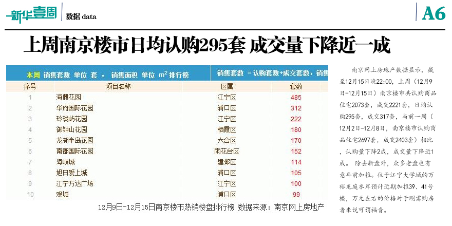 上周南京日均認(rèn)購295套