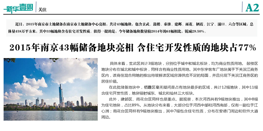 2015年南京市43幅儲備地塊亮相