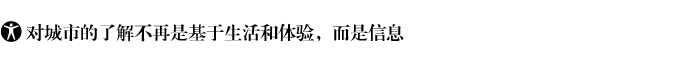 ![]() 城市越冒險,生活其中的人們對城市就會越陌生??梢姷氖聦嵤?,人們對城市的了解不再是基于生活和體驗,而是信息。此前延續(xù)多年的城市生活規(guī)律和節(jié)奏被互聯(lián)網打破了,互聯(lián)網把城市的每一部分都終端化,城市的每一個具有生命特征的組織不再受生理和情理的連接,而是信息的連接。一方面,信息成為連接人與人、人與城市、城市與城市的單一工具,信息把城市圈成了地域以外的另一種空間,只是,信息的流動性并沒有協(xié)助人了解城市,反倒是增加了越來越多的陌生。 另一方面,陌生又完成了城市開放意象的表達,這也是一座城市為什么能吸引外來者旅游、造訪、定居的重要原因。信息的獨立和集合讓人、讓城市的局部在封閉系統(tǒng)之外,又像互聯(lián)網時代的物流一樣多樣化、復合化。 |