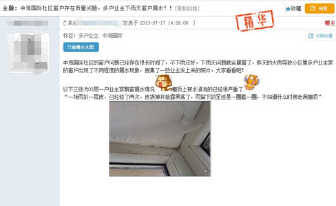 冰火兩重天,盡管業(yè)績方面成績單華麗,但另一方面中海全國多個(gè)項(xiàng)目卻問題不斷,飽受詬病。而開發(fā)商的中海地產(chǎn)態(tài)度冷淡、甚至漠視業(yè)主的訴求。人們不禁質(zhì)疑:身為大型央企,社會(huì)責(zé)任何在?[詳細(xì)] |