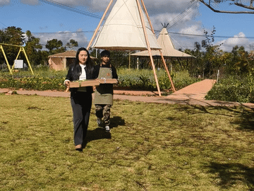 魏春(左)在大渡岗乡大干坝村培训露营地员工。