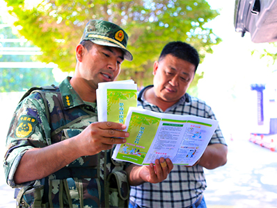 執(zhí)勤官兵向群眾宣傳禁毒知識(shí)