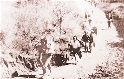 ????抗戰(zhàn)時期,全國各地愛國青年沖破國民黨頑固派封鎖,奔赴延安抗大。(資料圖)