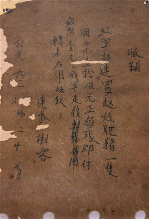 紅軍給群眾寫(xiě)的買(mǎi)豬收條(資料照片)