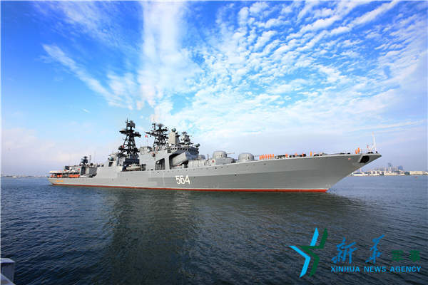 9月12日,俄羅斯參演軍艦駛抵湛江某軍港。新華社記者查春明 攝