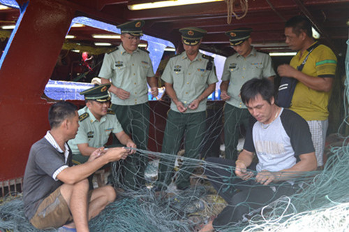 ????廣西北海邊防支隊銀海邊防大隊官兵日前主動作為,深入僑港碼頭開展拉網式安全生產大檢查,巡邏查控港口碼頭,檢查船舶證件是否齊全、安全設施是否合格,向漁民講授安全防范知識,保障開海工作順利進行。