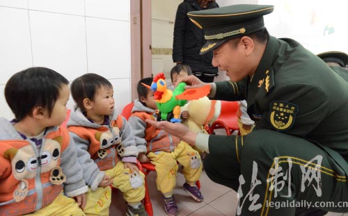 ????12月28日,廣東公安邊防總隊中山邊防支隊橫門水上邊防派出所聯(lián)合民眾鎮(zhèn)義工服務隊開展新年集體認親活動,邊防官兵和義工人員走進中山市兒童福利院與小朋友結對認親,“兵爸爸”給“兒女們”送來了玩具、糖果、學習用品等新年禮物,并與“兒女們”一起玩老鷹抓小雞、有獎問答、拍拍手等游戲,一家人用歡聲與快樂迎接新一年的到來。(肖亭 宗志鵬)