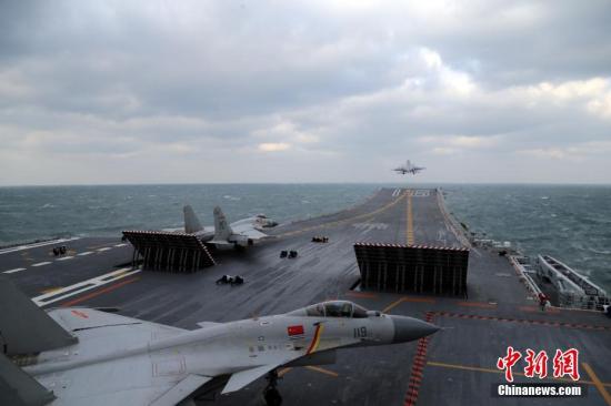 中國(guó)海軍航母編隊(duì)在南海組織艦載機(jī)起降訓(xùn)練