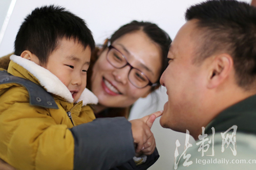 ????在邊檢站指揮中心工作的楊正因工作需要,經(jīng)常值班,回家次數(shù)較少,加上個(gè)人喜歡運(yùn)動(dòng),經(jīng)常健身并開展長(zhǎng)跑鍛煉,一直是兒子楊文博眼中的偶像。今年元旦恰好又是楊正值班,兒子聽說后一直纏著媽媽要到部隊(duì)找爸爸。到了部隊(duì)看到爸爸后,小文博開心地不得了,對(duì)爸爸又是親又是疼,還不停地和媽媽說:“媽媽,爸爸這里真好玩,以后我們經(jīng)常來爸爸這里玩好吧?”(鄭永波)