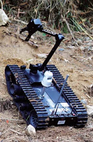 雷場清障車,是通過遙控操作的。具有在坡度小于40°的山地進行清障排爆作業(yè)的功能。該車具有較強的爬坡能力,操作手可以在1000米范圍內實施無線遙控控制,完成掃除淺層防步兵地雷、清除灌木叢和鏟運樹木等任務,以電錘擊爆地雷手雷等未爆炸物品,這期間即使產生爆破碎片或者沖擊波都不會對操作員構成危險。
